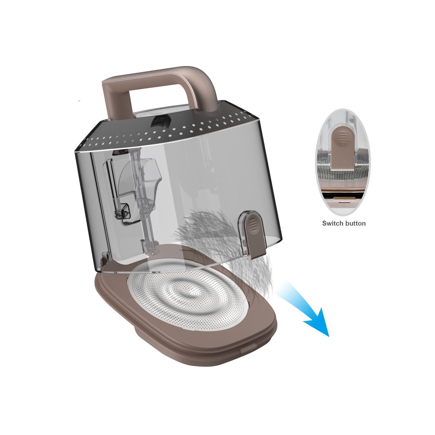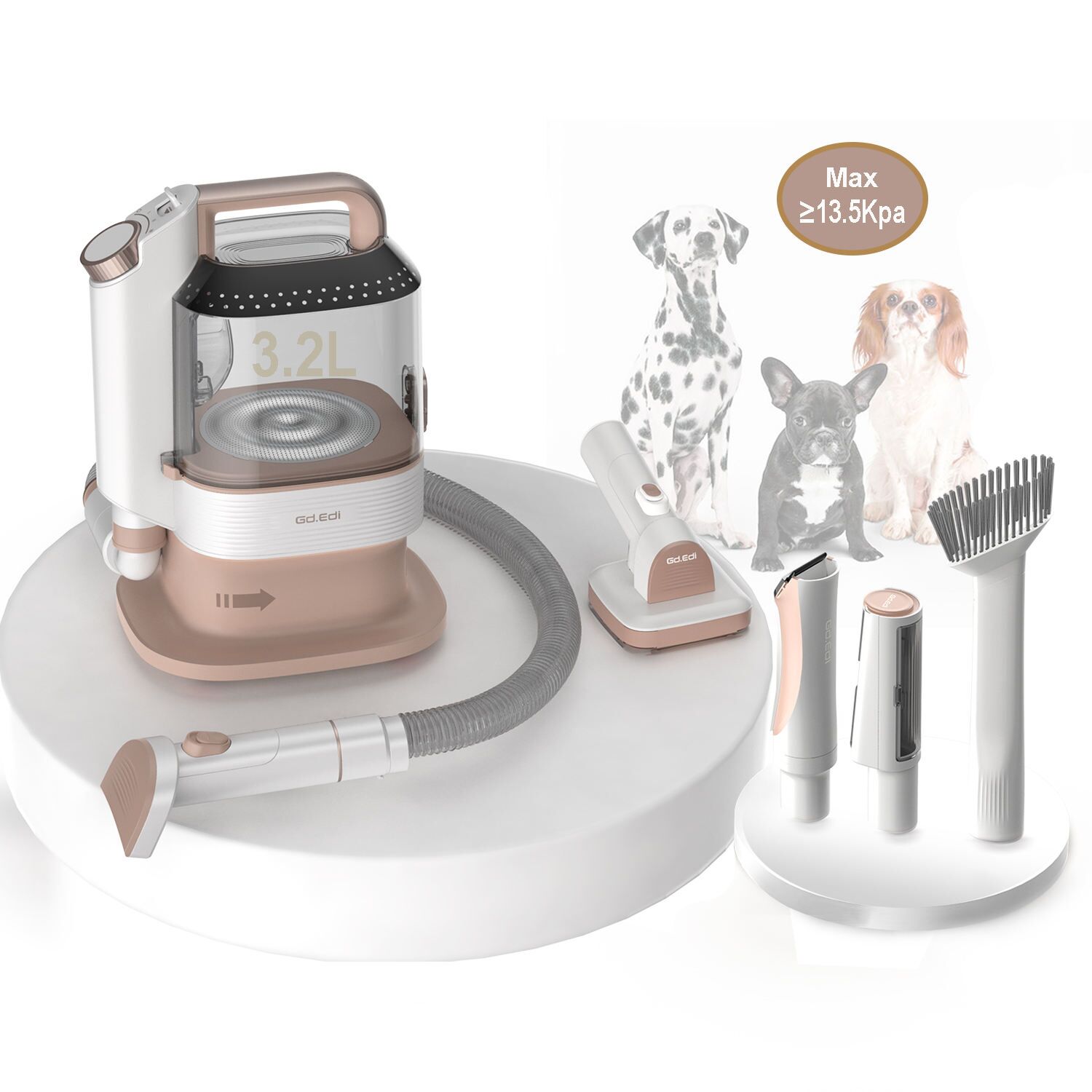 This pet vacuum cleaner has three suction speeds with a low-noise design to help the pet feel at ease and no longer fear haircuts. If your pet fears vacuum noise, start from the low mode.